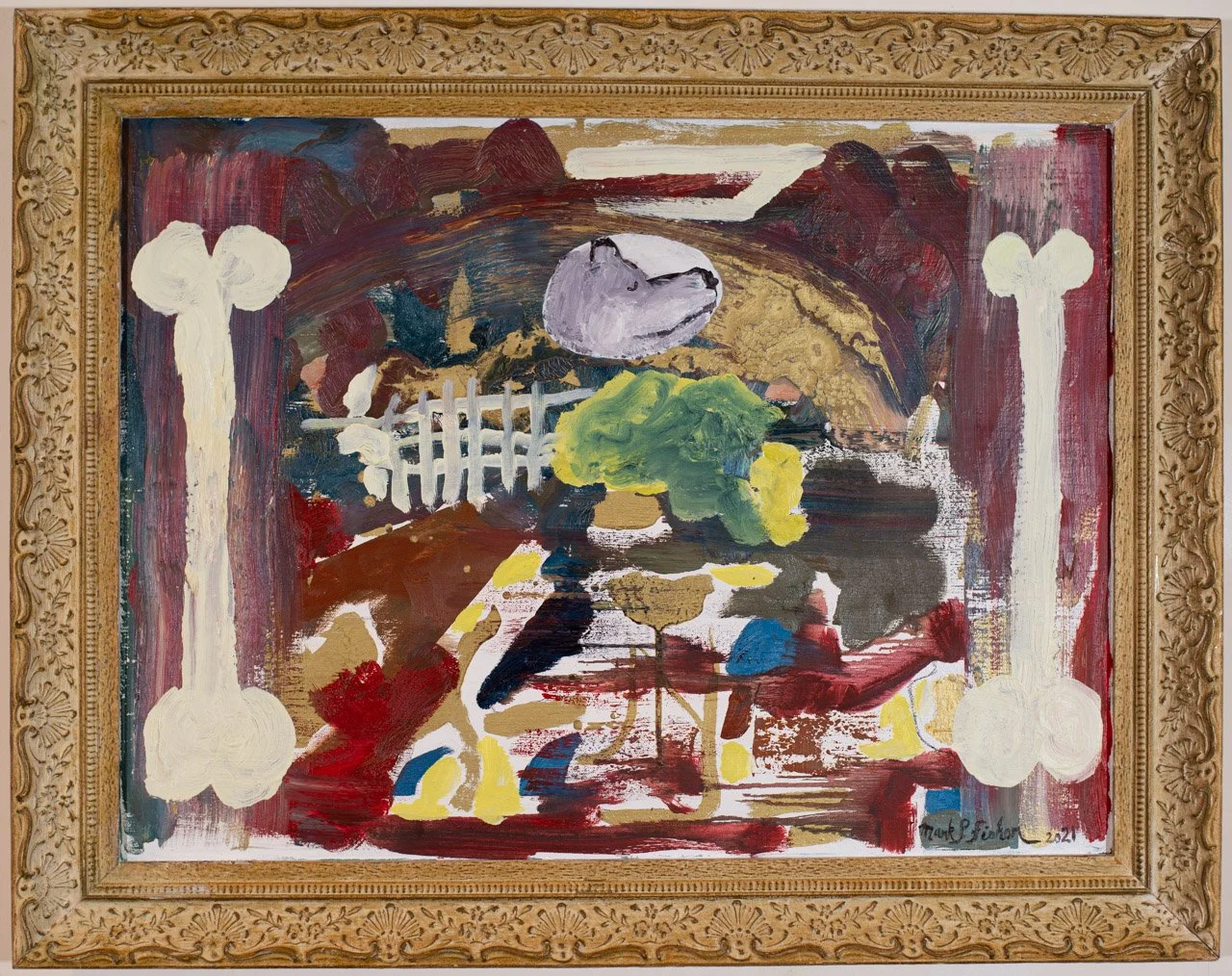 For Matty, Acrylic on Reclaimed, Whited-Out Framed Canvas ( All painting / imagery by Mark Fisher ), 22 x 28 in., Fall 2021