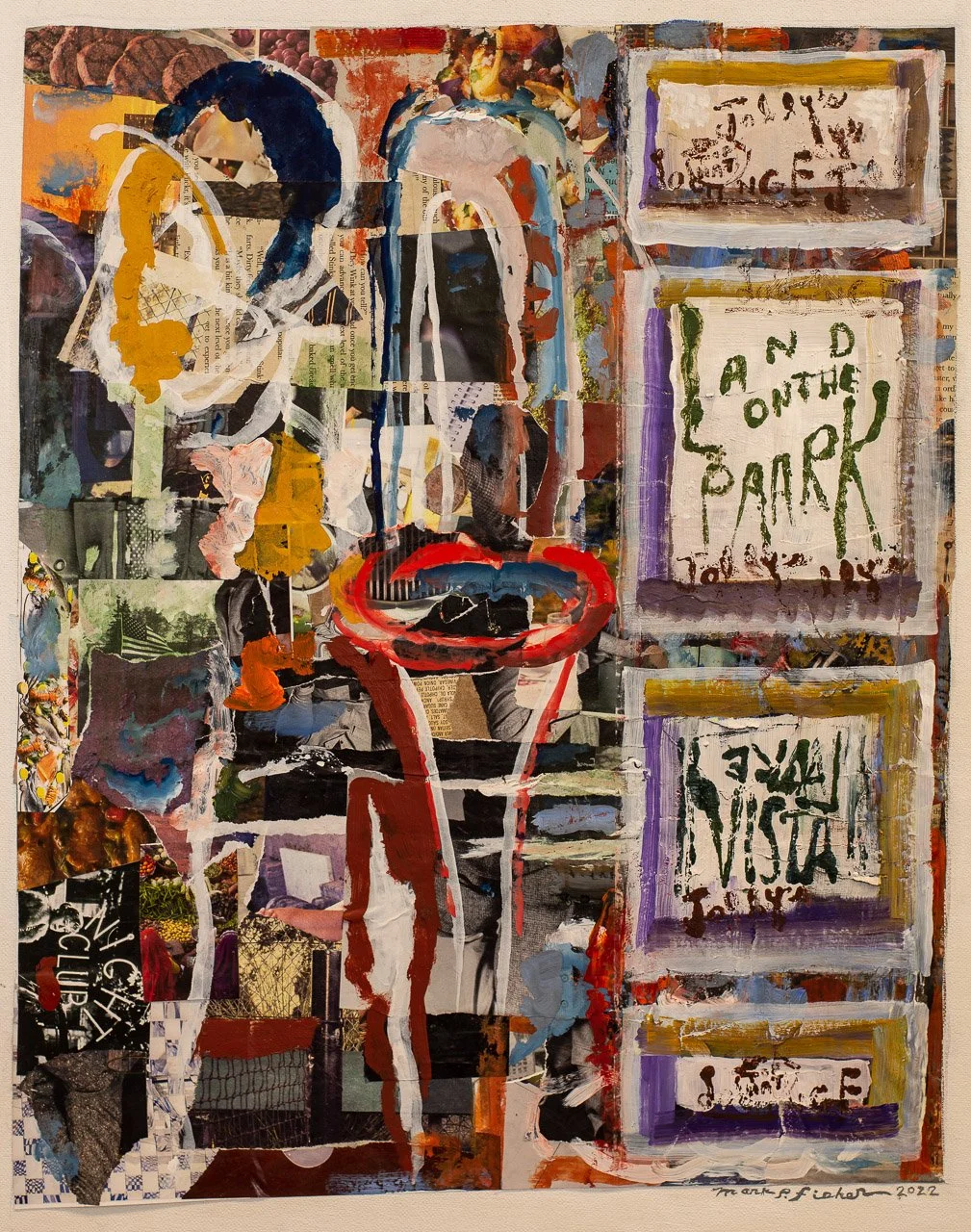 Jolly’s Land on the Park Lake Vista Top Hat Lounge, Collage with Oil and Gouache Paint, 20 x 16 in., Spring 2022